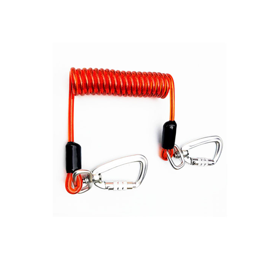 Heavy duty coiled kind with fully twistlock aluminum carabiners for safety attaching