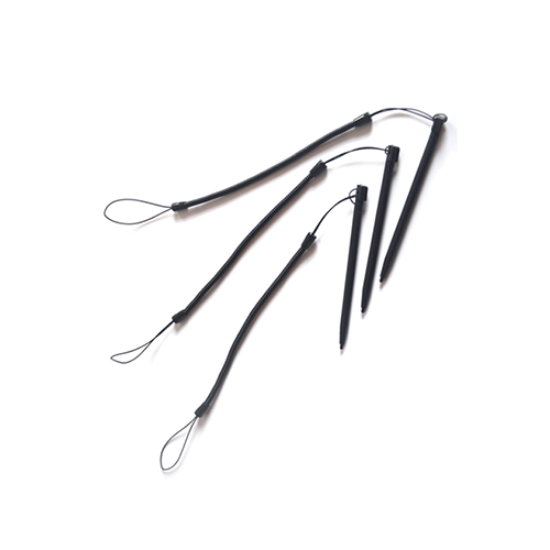 Stretchy Black Coiled Stylus Tether Cord With Black Nylon String Loops 2PCS